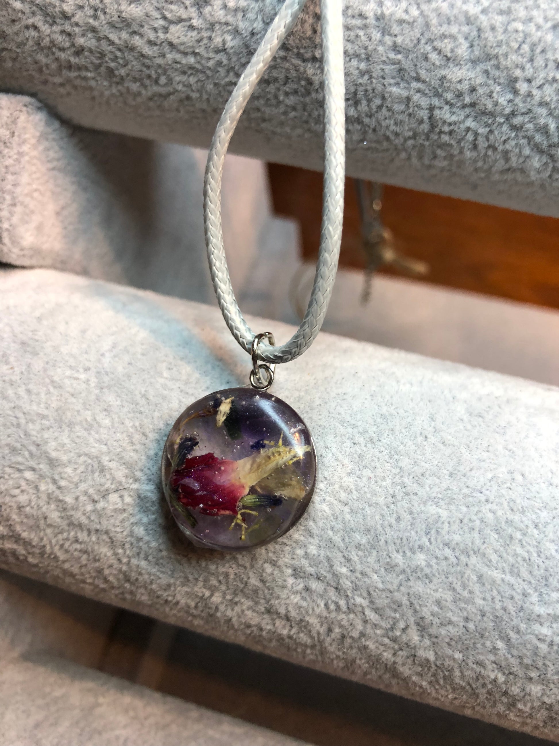 Beautifully hand crafted resin in metal Necklace. Gorgeous and timeless one-of-a-kind piece.