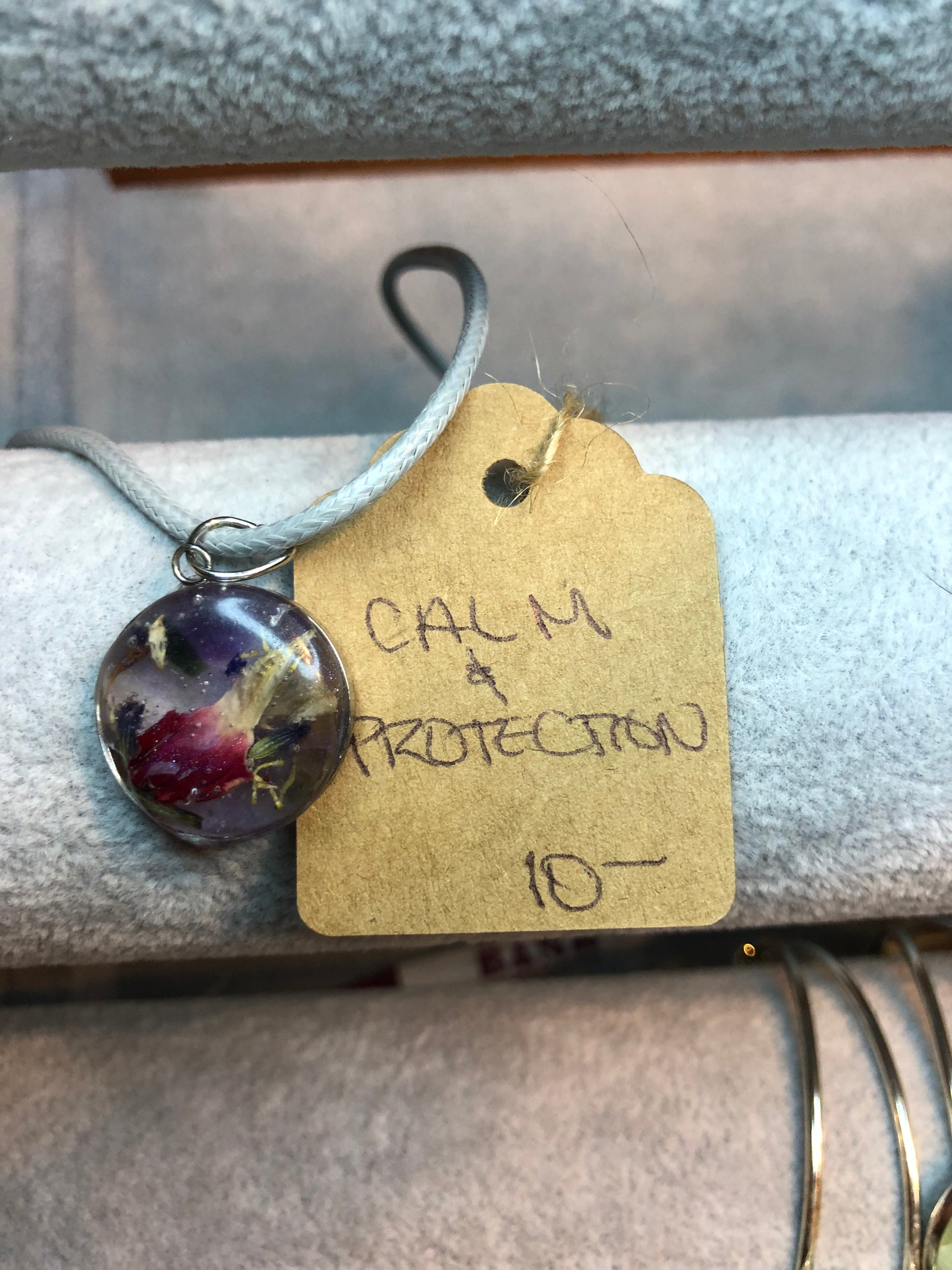 The tag shows the specific ingredients that are set into resin to send it’s messages to the universe.