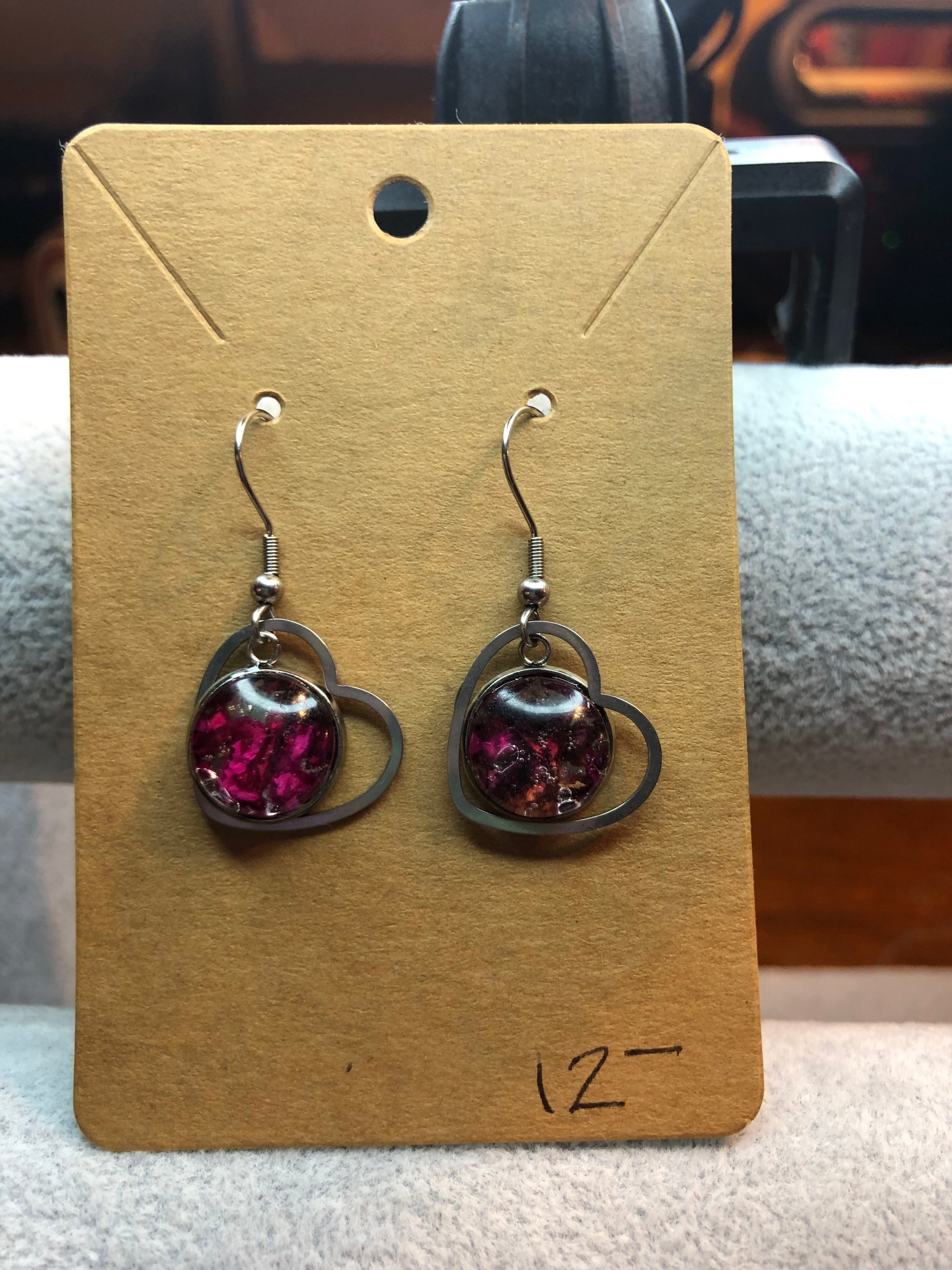 Beautifully hand crafted resin in metal Earrings.  Gorgeous and timeless one-of-a-kind piece.